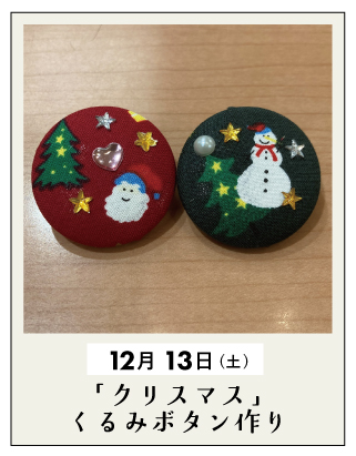 サンタさんや雪だるまの可愛いくるみボタンが作れる、クリスマスワークショップ!