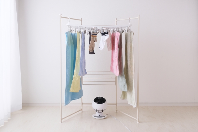 こまめな洗濯で、1度の洗濯量を減らすと、スペースに余裕を持って干せるので乾かしやすくなります。