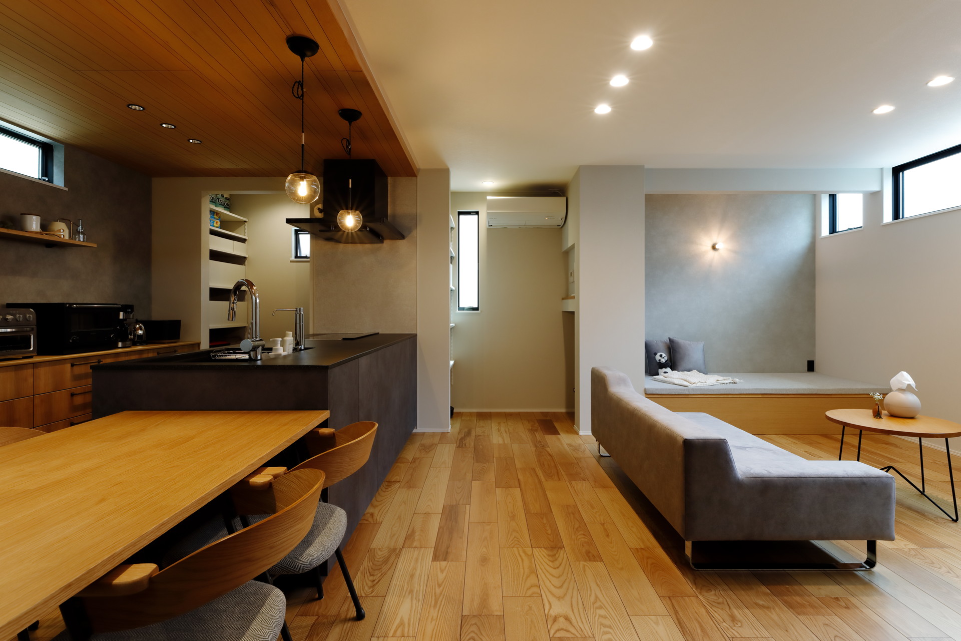 家具はロータイプを中心に配置すると、空間を広く、落ち着いた印象に見せられます。