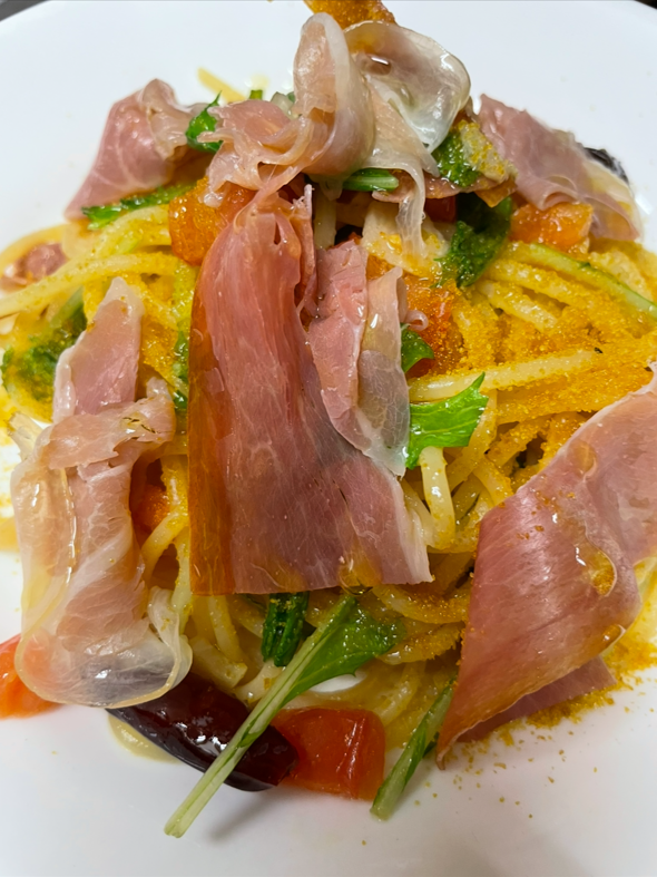 生ハムとボッタルガのペペロンチーノ