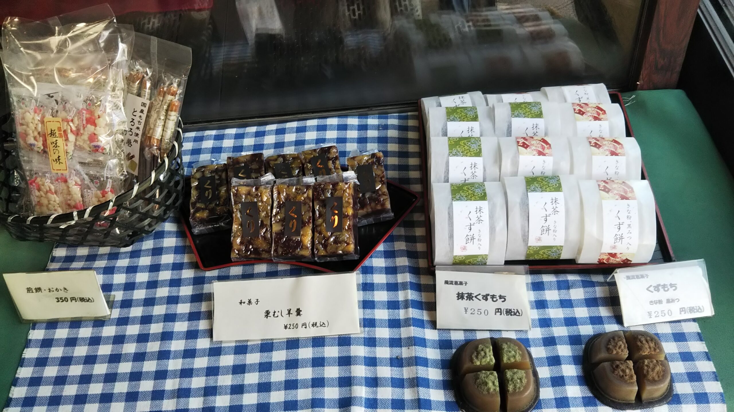おまんじゅうやどら焼き、豊中銘菓の「萩の月」など、ホッとする和菓子がたくさん揃います。