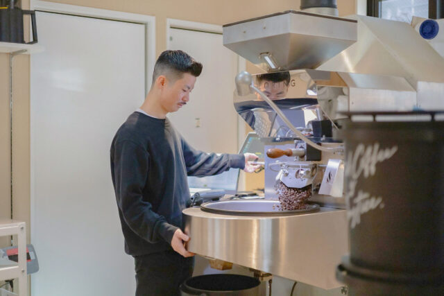 江坂店では焙煎機を設置しており、店舗にて日々焙煎をしているとか。